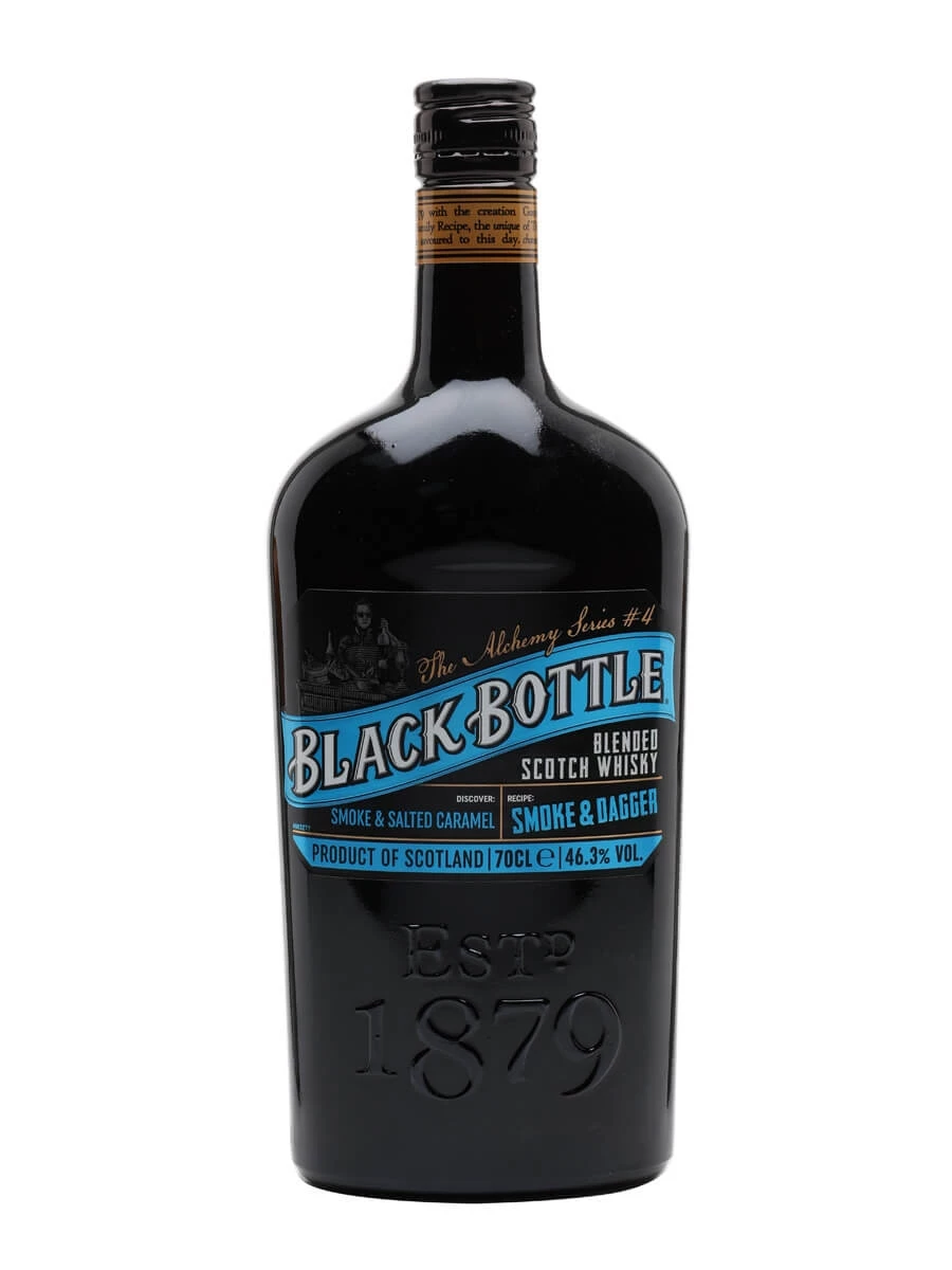 A bold smoke-bomb from the Black Bottle Alchemy series, Smoke and Dagger is made with a combination of heavily-peated malt whisky and grain whisky that has been matured in casks that previously held peated whisky. Aromas of TCP, sea salt, coastal peat, burnt rubber, dried herbs, seaweed and salted caramel fill the nose, complemented by notes of honey, malt, oaky vanilla, boiled sweets, salted caramel and peat smoke throughout the palate.