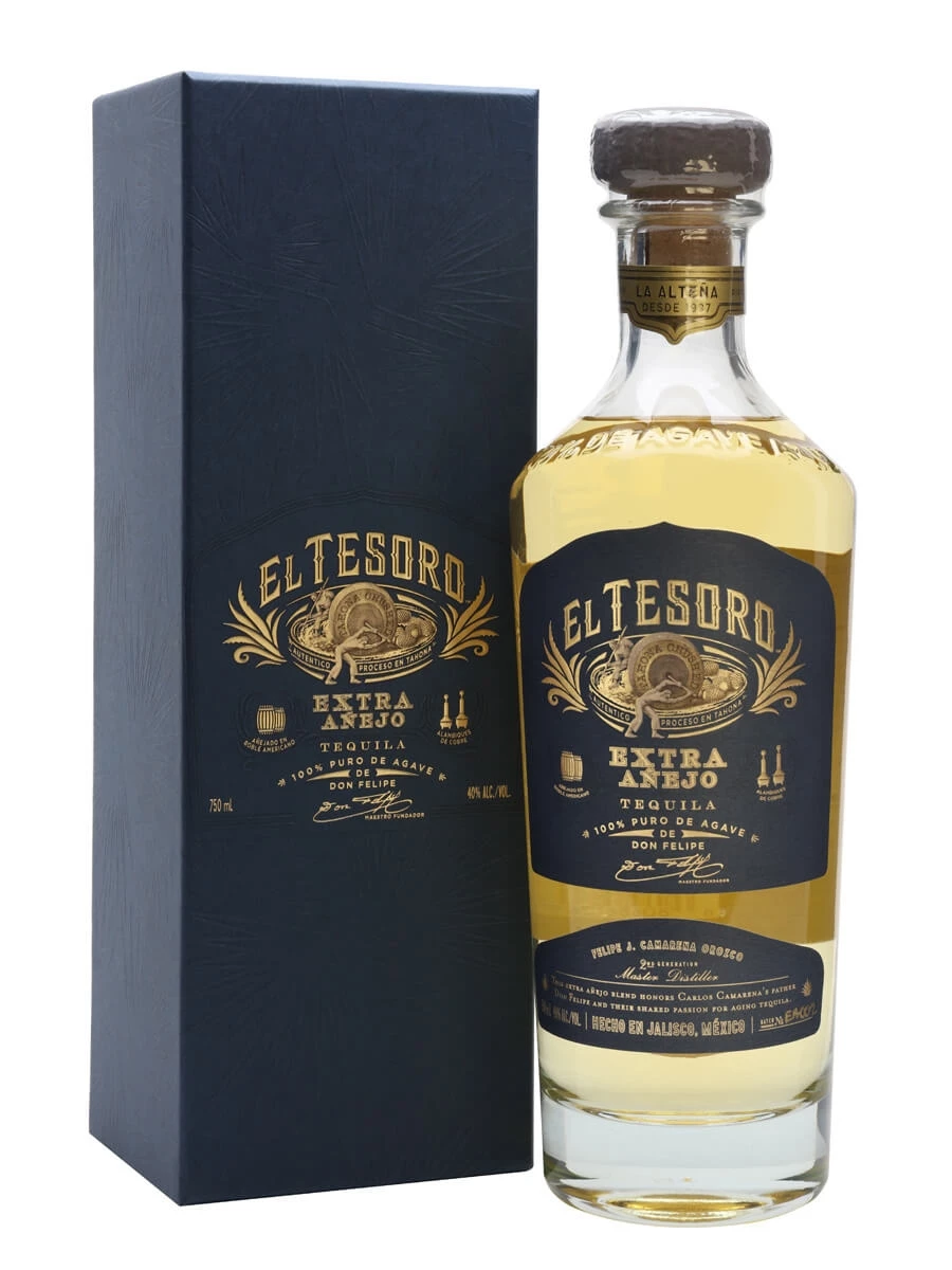 El Tesoro Extra Anejo Tequila has spent at least four years in ex-bourbon barrels, creating aromas of coffee, cinnamon, butter and caramel on the nose. The palate offers notes of dark chocolate, coffee, roasted almonds and dry fruit, as well as black pepper and oak notes that linger in the finish.