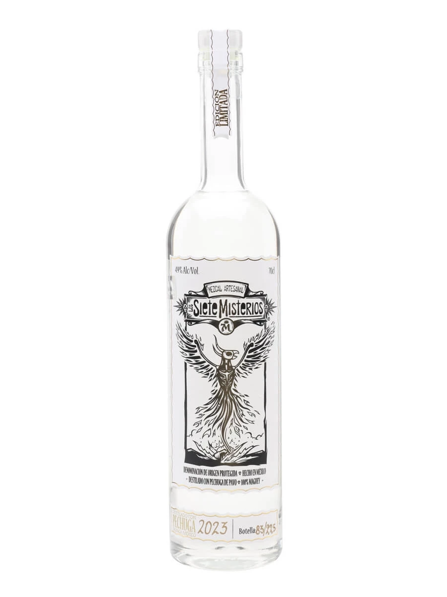 A rich, full-bodied Pechuga from Los Siete Misterios that is made in small batches in Santiago Matatlan. This Pechuga is triple distilled, but before the third distillation a blend of fruit and spices is added to the still and a raw chicken breast is suspended in the still. This process adds layers of rich, fruity flavours and aromatic, herbal smoke.