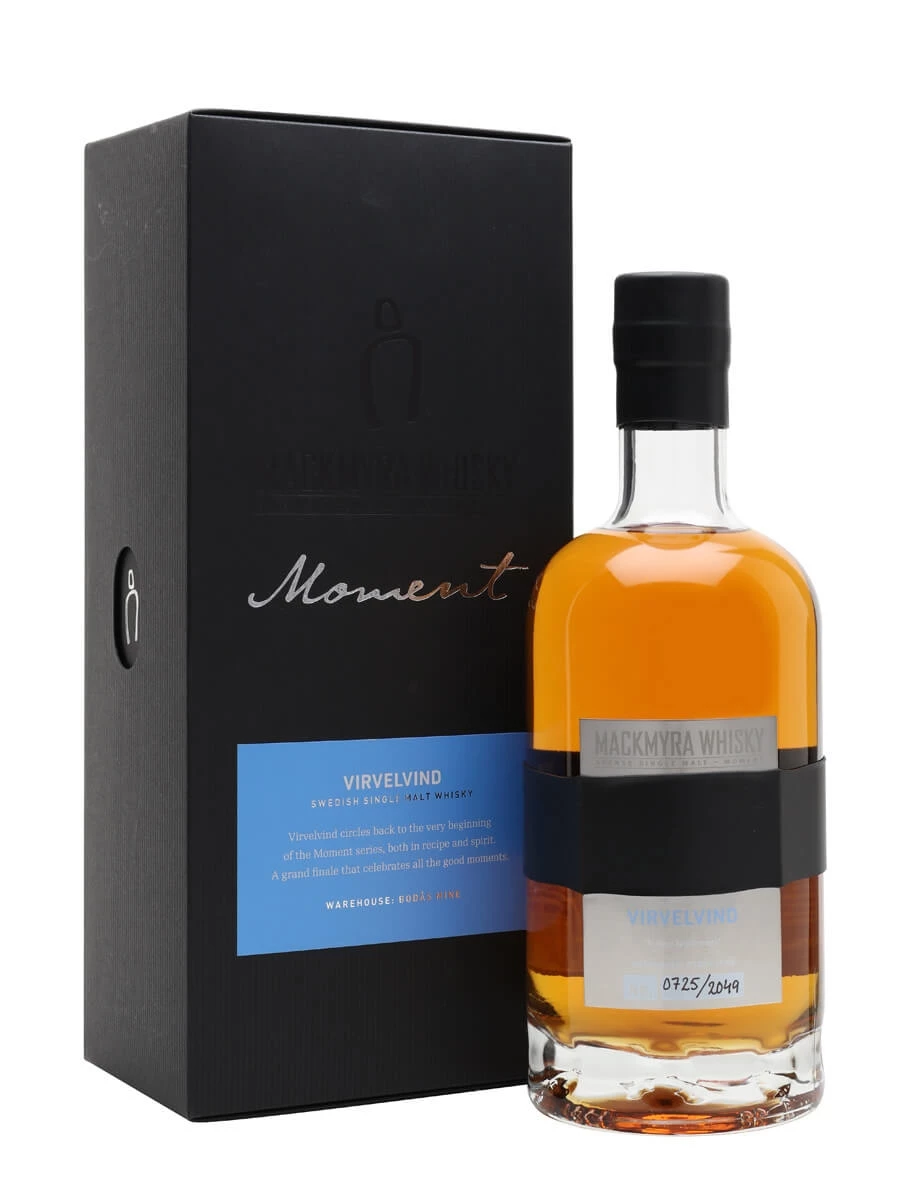 The 36th and final release in Swedish distillery Mackmyra’s Moment series, Virvelvind is inspired by the very first release in the series – Medvind. Using the same combination of first-fill bourbon, peated first-fill bourbon, second-fill oloroso sherry and virgin Swedish oak casks, filled in 2007 and 2010, it has been matured for longer than the original, creating a softly smoky, fruity character. Aromas of pears, red apples, orange, vanilla, muscovado sugar and soft smoke fill the nose, complemented by notes of vanilla fudge, juicy pear, bitter orange, juniper, lime, tobacco and sweet peat smoke throughout the palate.
