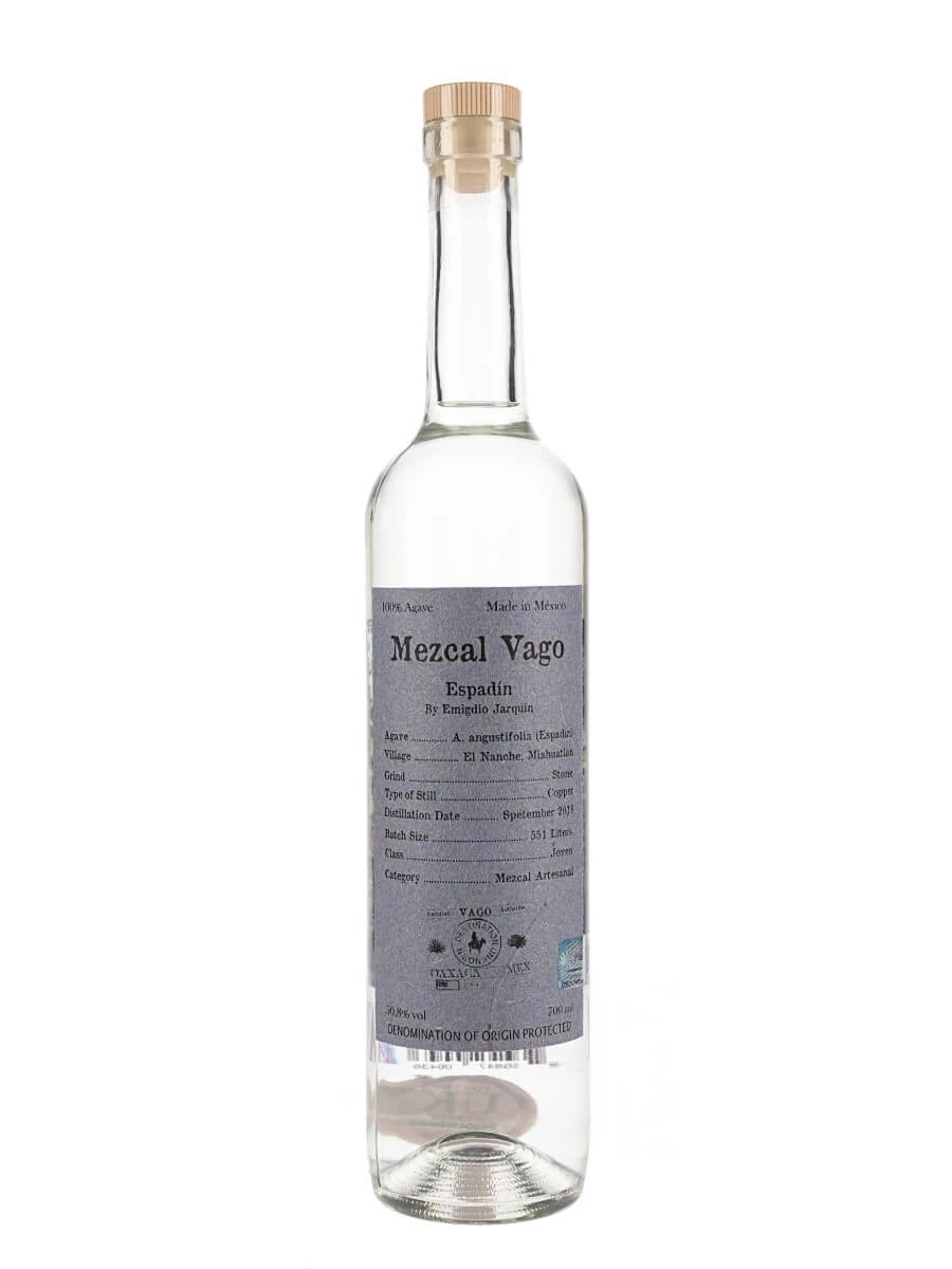 An artisanal mezcal from Vago that was made in September 2018 by mezcalero Emigdio Jarquin, using 100% Espadin agave. The palate is smoky and herbal, with notes of banana and star anise that linger in the finish.