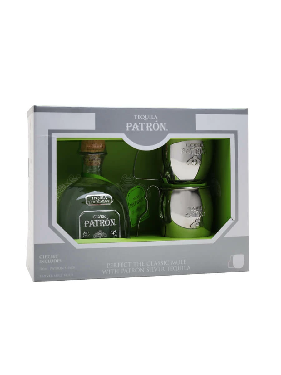 A lovely gift set from Patron, including a pair of stylish mule mugs and a bottle of Patron Silver Tequila, made entirely from Weber blue agave in small batches. A light, slightly fruity tequila, this works well in a myriad of cocktails