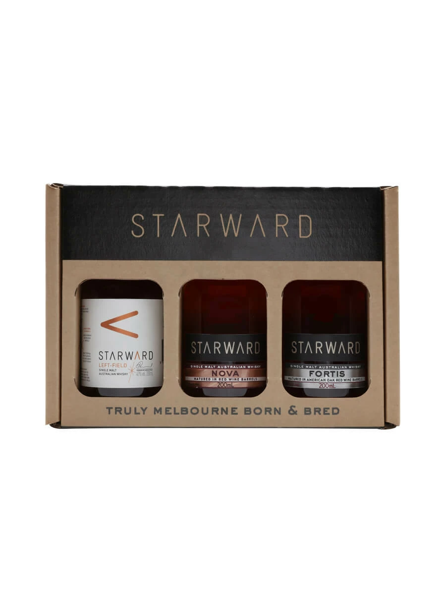 Enjoy a trio of Australian whiskies from Starward Distillery with this set, containing a small bottle of Starward Nova, Starward Fortis and Starward Classic.